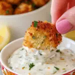 Cook at 400º Fahrenheit for 8 to 10 minutes, flipping the nuggets halfway through the process. You’ll notice the coating turn a gorgeous golden brown, and the catfish inside will become flaky and tender, signaling they’re ready to enjoy.