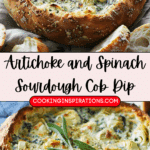 A creamy, cheesy artichoke and spinach dip baked inside a crusty sourdough cob loaf — golden on top, warm and gooey inside. Perfect for entertaining, this crowd-pleasing appetizer doubles as both a dip and a show-stopping centerpiece.