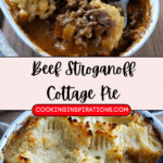 A luxurious fusion of two comfort classics, this beef stroganoff cottage pie features tender slow-cooked beef and mushrooms in a creamy sauce, topped with buttery mashed potatoes and a crispy parmesan crust. Perfect for make-ahead family dinners or freezer-friendly meal prep.