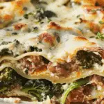 A rich and comforting lasagna layered with broccoli rabe, aromatic homemade Italian-style sausage, and a creamy Parmesan mornay sauce. Rustic, bold, and deeply satisfying.