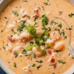 This luxurious Crab and Shrimp Seafood Bisque is a creamy, comforting soup packed with fresh seafood, aromatic vegetables, and a rich, flavorful broth. The bisque is thickened with a classic roux and finished with cream and lemon juice for a perfectly balanced taste. Ideal for a special occasion or a cozy night in, this recipe combines the delicate sweetness of crab and shrimp with smoky paprika and a hint of thyme to create an indulgent dish that seafood lovers will adore.