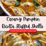 Creamy Pumpkin Ricotta Stuffed Shells are a cozy, comforting baked pasta dish filled with a creamy pumpkin and ricotta mixture, aromatic herbs, and melty cheese. Perfect for fall, this golden, bubbly meal brings together sweet pumpkin and savory Italian flavors for a hearty and elegant dinner.