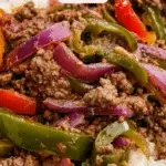 This Easy Beef and Peppers Skillet is a flavorful, one-pan Asian-inspired dish featuring ground beef, bell peppers, and onions simmered in a rich soy-based sauce. Perfect for a quick weeknight dinner, it’s served over fluffy cooked rice and topped with chili garlic sauce for an added kick.