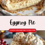 A festive Eggnog Pie featuring a spiced gingersnap crust and silky, spiced custard filling, topped with whipped cream and fresh nutmeg—perfect for holiday gatherings.
