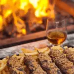 This French Onion Steak Skewers recipe features tender, thinly sliced top sirloin layered with Swiss cheese and rich caramelized onions deglazed with Pendleton Bourbon, grilled to perfection and finished with a flavorful cheese crust for a deliciously indulgent meal inspired by Turkish steak skewers.