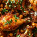 This One Pan Moroccan Chicken and Chickpeas is a fragrant, flavorful dish featuring crispy chicken thighs, spiced chickpeas, and bright lemon. Packed with warm Moroccan-inspired spices, it’s an easy, wholesome one-pan meal that’s both hearty and fresh — perfect for weeknights or entertaining.