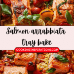 A vibrant one-pan salmon arrabbiata tray bake with flaky salmon, spicy tomato sauce, and tender risoni pasta. Packed with Mediterranean flavors, it’s a simple yet elegant dinner ready in just 30 minutes.
