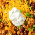 - Serve: For best results, combine the cooked pasta with the cheesy chili just before serving. Garnish with sliced green onions, additional shredded cheese, sour cream, and hot sauce if desired. Enjoy your hearty meal!