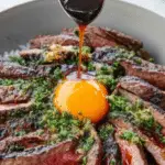 This recipe centers around steak, but you could substitute grilled mushrooms or marinated tofu for a plant-based twist. Use tamari instead of soy for gluten-free, and omit the egg yolk for vegan-friendly. The bourbon sauce remains a standout flavor no matter the protein.