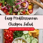 A vibrant and fresh Mediterranean Chickpea Salad featuring a creamy, tangy smashed feta dressing mixed with crisp vegetables and fresh herbs. Perfect for a light lunch or side dish during the summer, this no-cook recipe is quick, easy, and full of flavor.